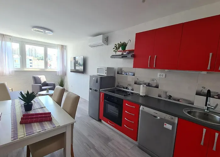 Također, tu je potpuno opremljena kuhinja s hladnjakom i pećnicom. Apartman je udaljen samo nekoliko metara od autobusne stanice Domovinskog rata - Pujanke.